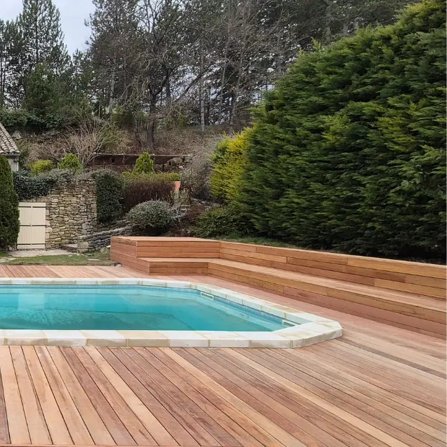 Terrasse en bois exotique, en pin traité, ou en bois composite, elle est idéale autour d’une piscine ou un jardin paysager pour apporter chaleur et authenticité à votre extérieur,